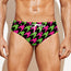 Are you looking for unique men's swim briefs? Check our Pink And Green Houndstooth Pattern Print Men's Swim Briefs on GearFrost. Our swim briefs are handcrafted to the highest quality standards and made-to-order for you!