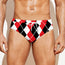 Are you looking for unique men's swim briefs? Check our Red Black And White Argyle Print Men's Swim Briefs on GearFrost. Our swim briefs are handcrafted to the highest quality standards and made-to-order for you!