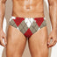 Are you looking for unique men's swim briefs? Check our Red White And Beige Argyle Pattern Print Men's Swim Briefs on GearFrost. Our swim briefs are handcrafted to the highest quality standards and made-to-order for you!