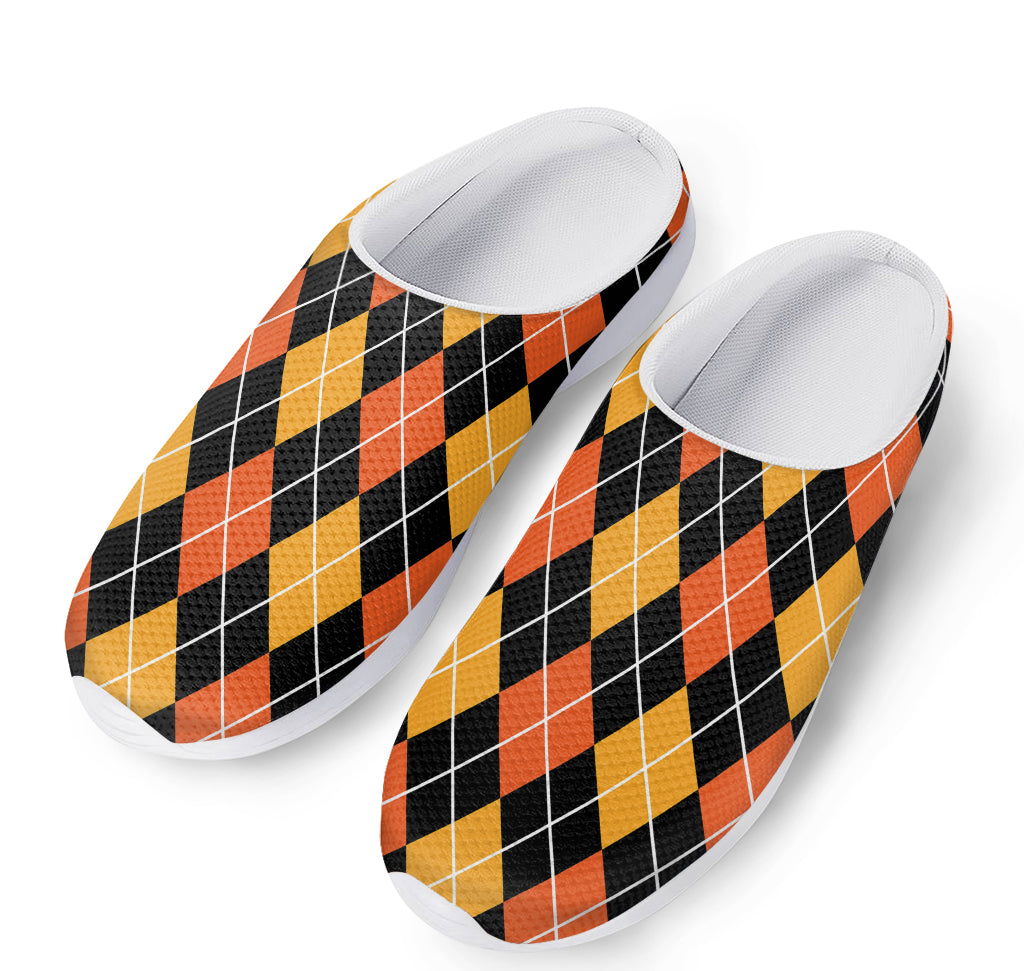 Halloween Black And Orange Argyle Print Mesh Casual Shoes