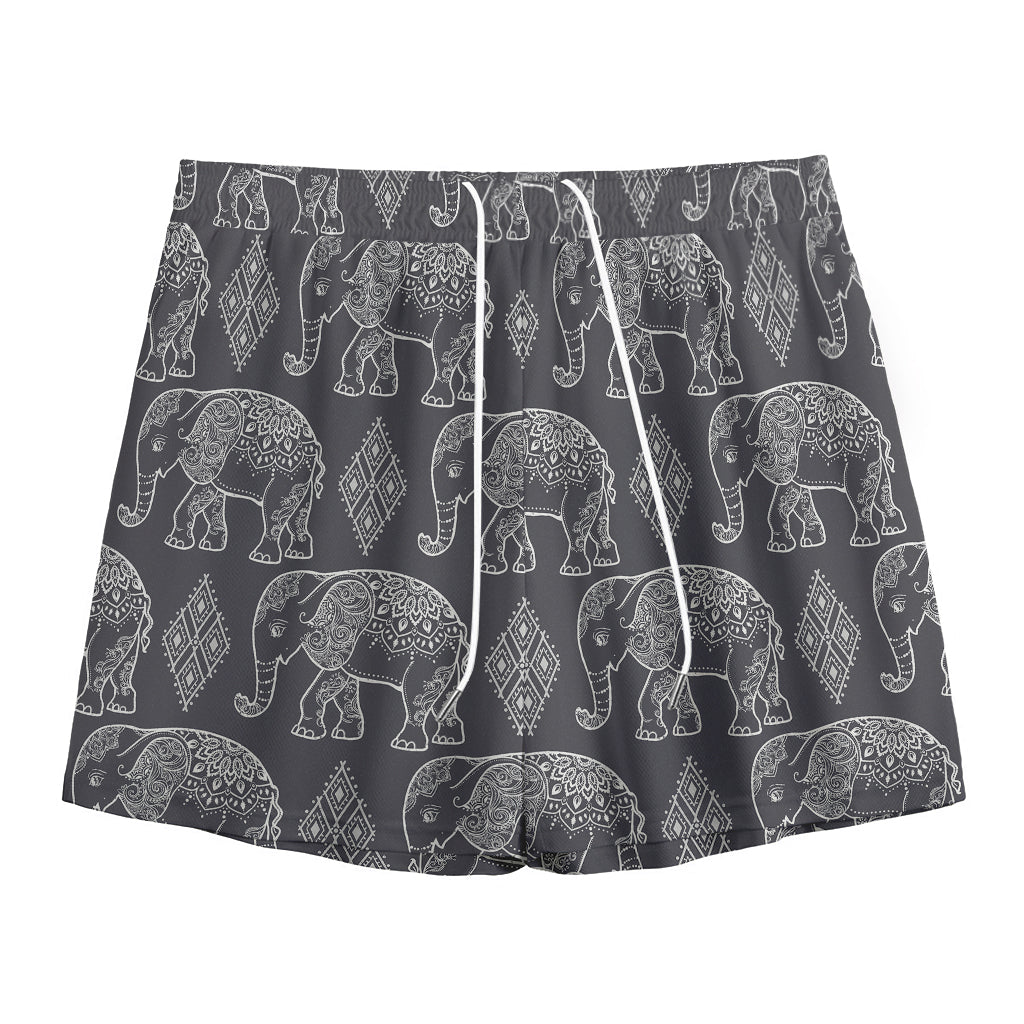 White And Grey Snowflake Pattern Print Mesh Shorts