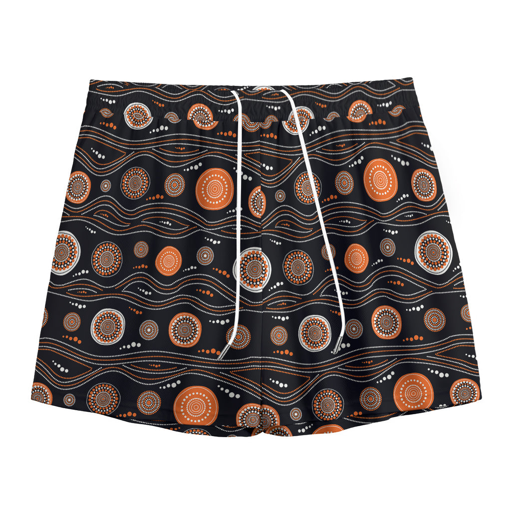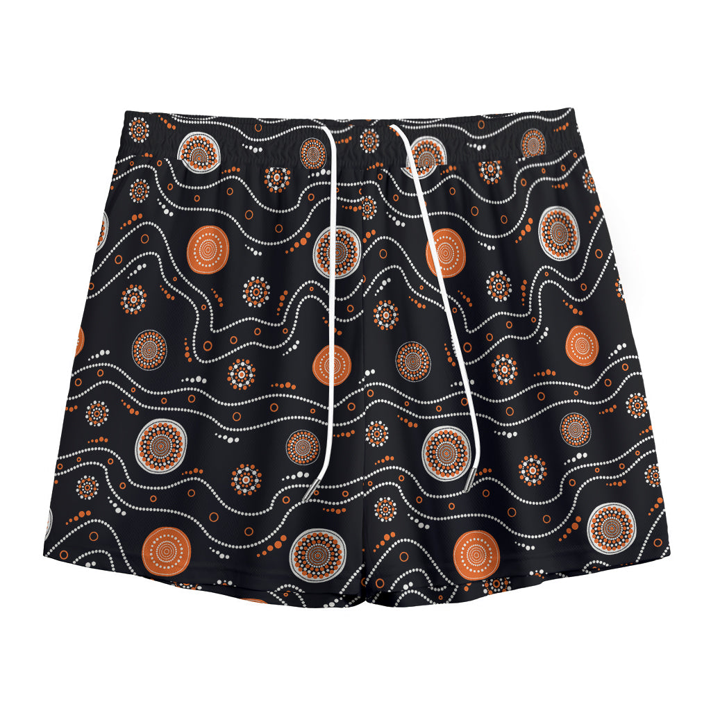 White And Orange Aboriginal Dot Print Mesh Shorts