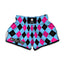 Are you looking for unique boxing shorts? Check our Blue Pink And Black Argyle Pattern Print Muay Thai Boxing Shorts on GearFrost. Our boxing shorts are handcrafted to the highest quality standards and made-to-order for you!