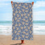 White Blue Hibiscus Floral Pattern Print Beach Towel