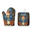 The Native American Wolf Girl Print Oven Mitt And Pot Holder Set is a reliable kitchen essential designed to keep your hands and surfaces safe during everyday cooking. Made from durable polyester with an insulation cotton lining, this set offers comfort and practical heat resistance for common kitchen tasks.