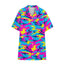 Neon EDM Zig Zag Pineapple Pattern Print Men's Short Sleeve Shirt