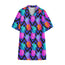 Neon EDM Zig Zag Pineapple Pattern Print Men's Short Sleeve Shirt