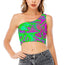 Are you looking for unique crop tops? Check our Neon Green Pink Psychedelic Trippy Print One Shoulder Crop Top on GearFrost. Our crop tops are handcrafted to the highest quality standards and made-to-order for you!