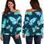 Sea Blue Mermaid Scales Pattern Print Off The Shoulder Sweatshirt