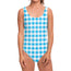 Are you looking for unique swimsuits? Check our Cyan Blue And White Gingham Print One Piece Swimsuit on GearFrost. Our swimsuits are handcrafted to the highest quality standards and made-to-order for you!