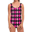 Are you looking for unique swimsuits? Check our Deep Pink And Black Argyle Pattern Print One Piece Swimsuit on GearFrost. Our swimsuits are handcrafted to the highest quality standards and made-to-order for you!
