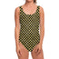 Are you looking for unique swimsuits? Check our Gold And Black Checkered Pattern Print One Piece Swimsuit on GearFrost. Our swimsuits are handcrafted to the highest quality standards and made-to-order for you!