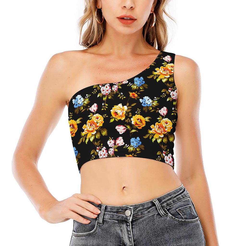 Vintage Floral Flower Pattern Print One Shoulder Crop Top