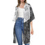 White Rose Print Open Front Beach Cover Up