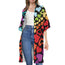 Colorful Giraffe Portrait Print Open Front Beach Cover Up