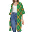 Saint Patrick's Day Plaid Pattern Print Open Front Beach Cover Up
