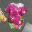 Embroidery Orchid Flower Pattern Print Men's Short Sleeve Shirt