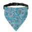 The Turquoise Floral Bohemian Pattern Print Over The Collar Dog Bandana offers a simple way to dress up your dog or cat without fuss. Whether you’re heading out for a stroll or snapping cute photos, this collar-accessory bandana is a low-maintenance, stylish choice for pets of all sizes.