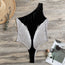 Black And White Harlequin Pattern Print One Shoulder Bodysuit