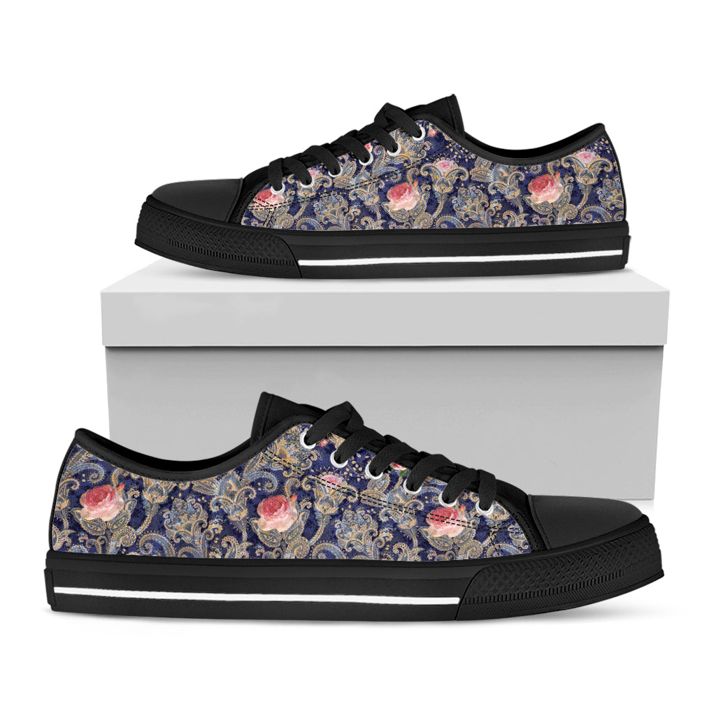 Ornamental Paisley Mandala Print Black Low Top Sneakers