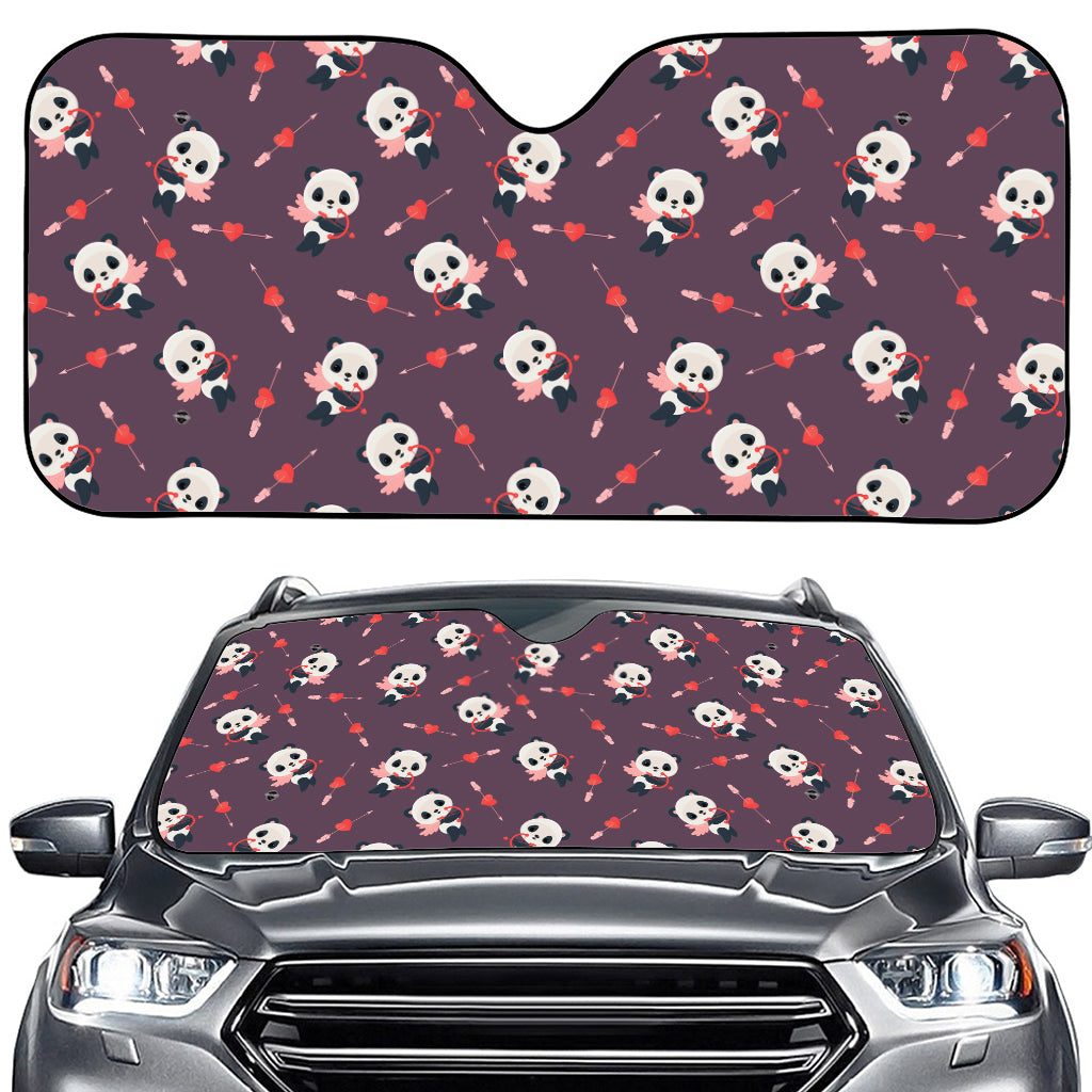 Cute Panda Cupid Valentine Pattern Print Car Windshield Sun Shade