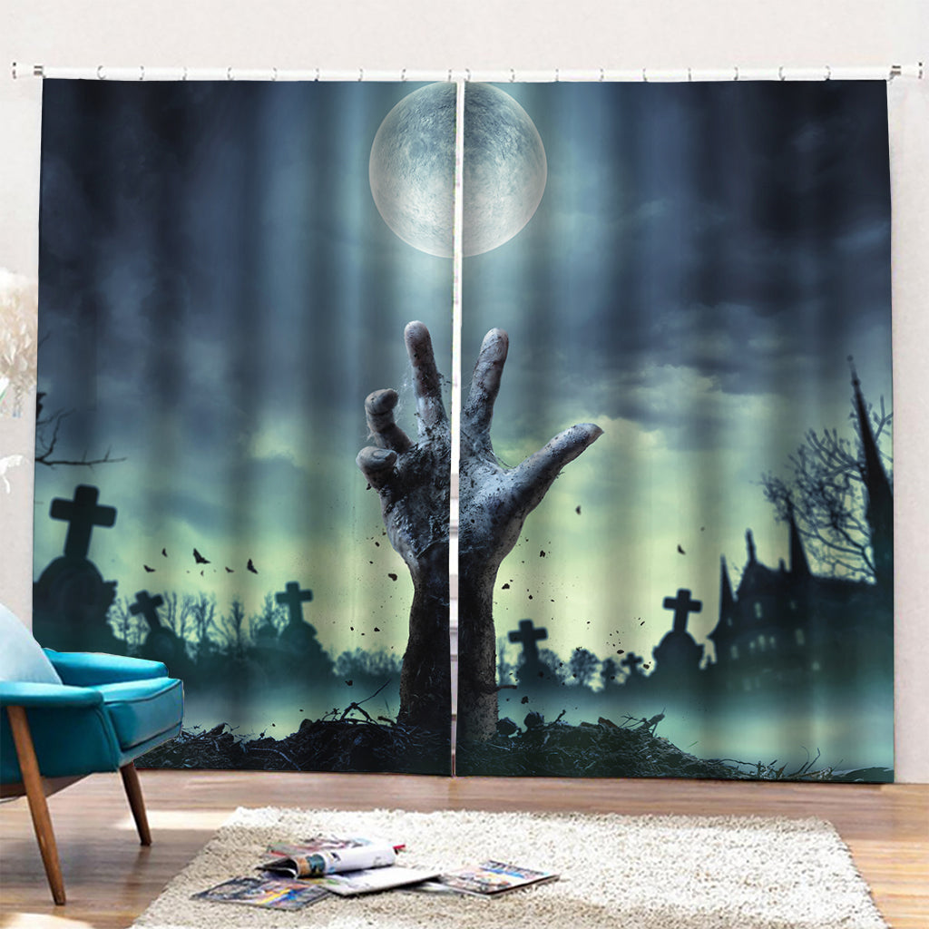 Zombie Hand Rising From Grave Print Pencil Pleat Curtains