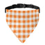 The Orange And White Gingham Pattern Print Over The Collar Dog Bandana offers a simple way to dress up your dog or cat without fuss. Whether you’re heading out for a stroll or snapping cute photos, this collar-accessory bandana is a low-maintenance, stylish choice for pets of all sizes.