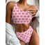 Vintage Pink Pig Pattern Print Front Bow Tie Bikini