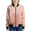 The jacket is equipped with a high-quality, no-snag zipper, making it easy to put on or take off without hassle. Its ribbed collar, cuffs, and waistband provide a snug and flattering fit, accentuating the classic bomber jacket style. This timeless design pairs effortlessly with a variety of outfits, from casual jeans to sporty looks, making it a versatile addition to your wardrobe.