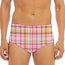 Stay confident at the pool or beach with the Cotton Candy Pastel Plaid Pattern Print Men's Triangle Swim Briefs. Designed with a blend of 88% polyester and 12% spandex, these swim briefs provide comfort, stretch, and support for everyday swimwear use. The smooth fabric and regular fit make them practical for both swimming and lounging.