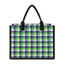 Carry your essentials in style with the White Green And Blue Buffalo Plaid Print Canvas Tote Bag. Designed for daily use, this tote bag combines a modern look with practical features, making it a versatile companion for shopping trips, work, or travel.