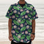 Black Palm Leaf Aloha Pattern Print Men's Short Sleeve Shirt