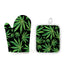 The Watercolor Marijuana Leaf Pattern Print Oven Mitt And Pot Holder Set is a reliable kitchen essential designed to keep your hands and surfaces safe during everyday cooking. Made from durable polyester with an insulation cotton lining, this set offers comfort and practical heat resistance for common kitchen tasks.