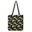 - Each tote features a double-sided print and is finished with a set of straps for over-the-shoulder carrying.