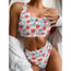 Cute Christmas Poinsettia Pattern Print Front Bow Tie Bikini