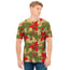 Watercolor Christmas Poinsettia Print Men's Short Sleeve Shirt