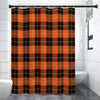 Orange Black And Yellow Tartan Print Premium Shower Curtain