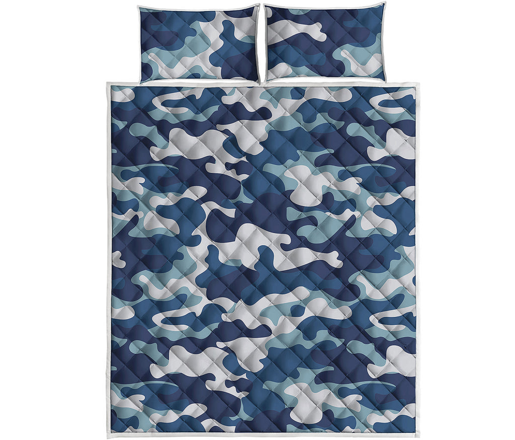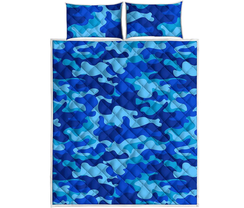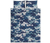 Blue Camouflage Print Quilt Bed Set