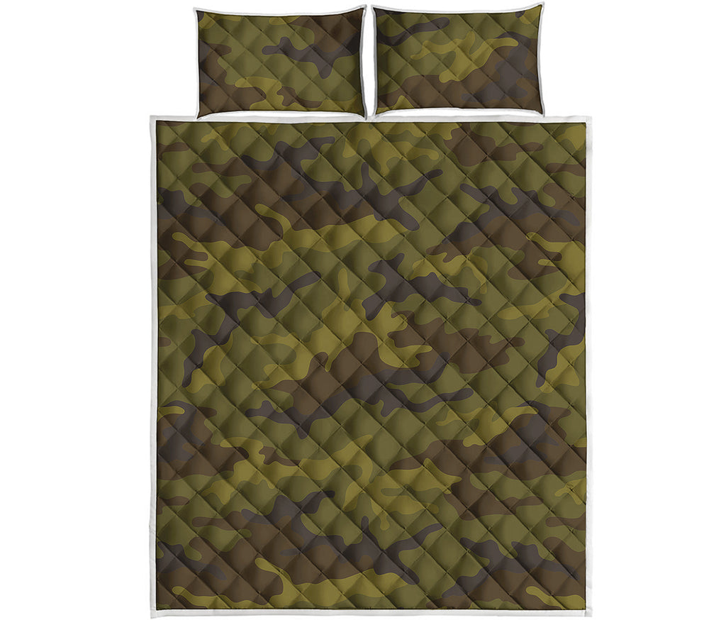 Brown Green Camouflage Print Quilt Bed Set