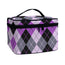 Keep your beauty essentials organized on the go with the Black Grey And Violet Argyle Print Travel Makeup Bag. Designed with comfort and practicality in mind, this bag offers a simple yet stylish way to carry your makeup for travel, business, or daily use.