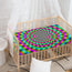The Psychedelic Rave Optical Illusion Baby Crib Sheet is ideal for everyday use, offering a secure and smooth surface that fits most standard crib mattresses. It's a practical nursery essential that complements a wide range of crib bedding styles.
