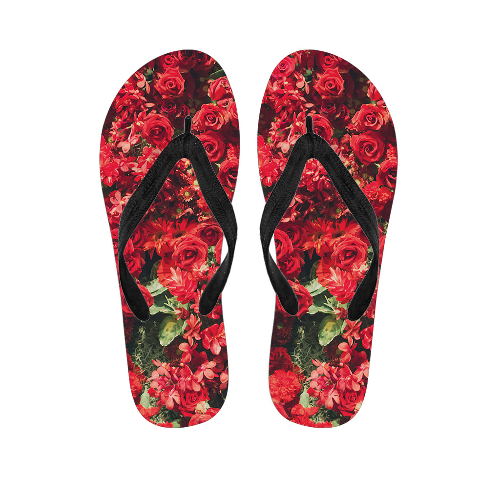 Red Rose Flower Camouflage Print Black Slip On Sneakers