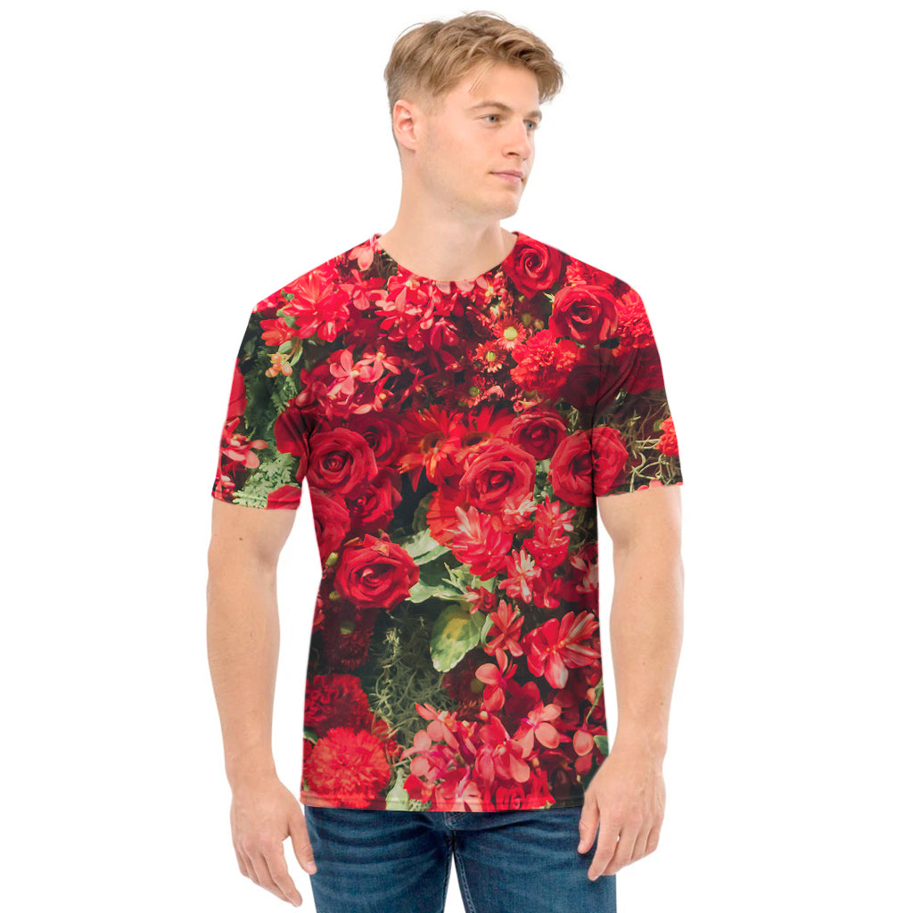 Red Rose Flower Camouflage Print Men's Baseball Jersey