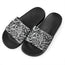Knitted Style Reggae Pattern Print Black Slide Sandals