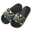 Zig Zag Tropical Pattern Print Black Slide Sandals