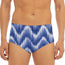 Stay confident at the pool or beach with the Wavy Shibori Pattern Print Men's Triangle Swim Briefs. Designed with a blend of 88% polyester and 12% spandex, these swim briefs provide comfort, stretch, and support for everyday swimwear use. The smooth fabric and regular fit make them practical for both swimming and lounging.