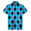 Blue Purple And Black Argyle Print Men's Short Sleeve Shirt