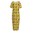 Yellow Stained Glass Mosaic Print Short Sleeve Long Nightdress