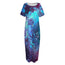 Universe Galaxy Outer Space Print Short Sleeve Long Nightdress