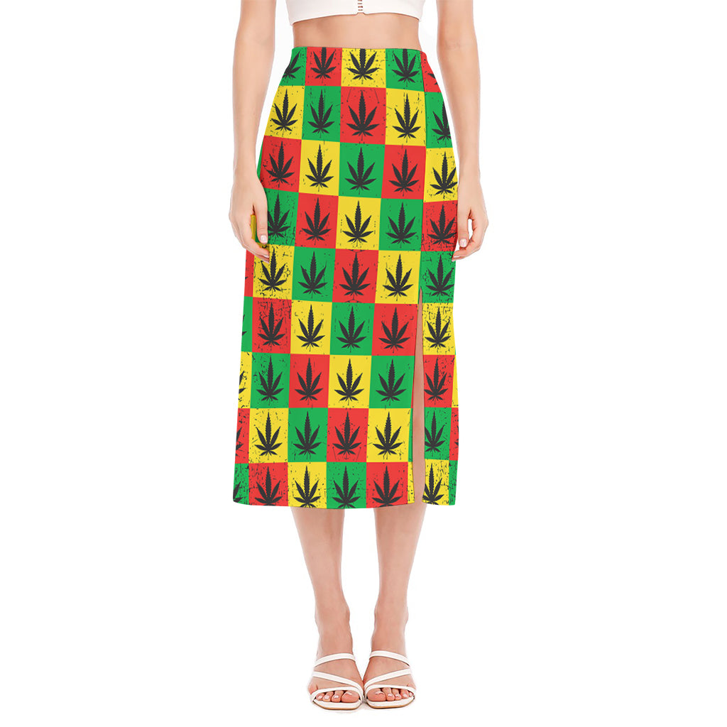Zigzag Pizza Pattern Print Side Slit Midi Skirt